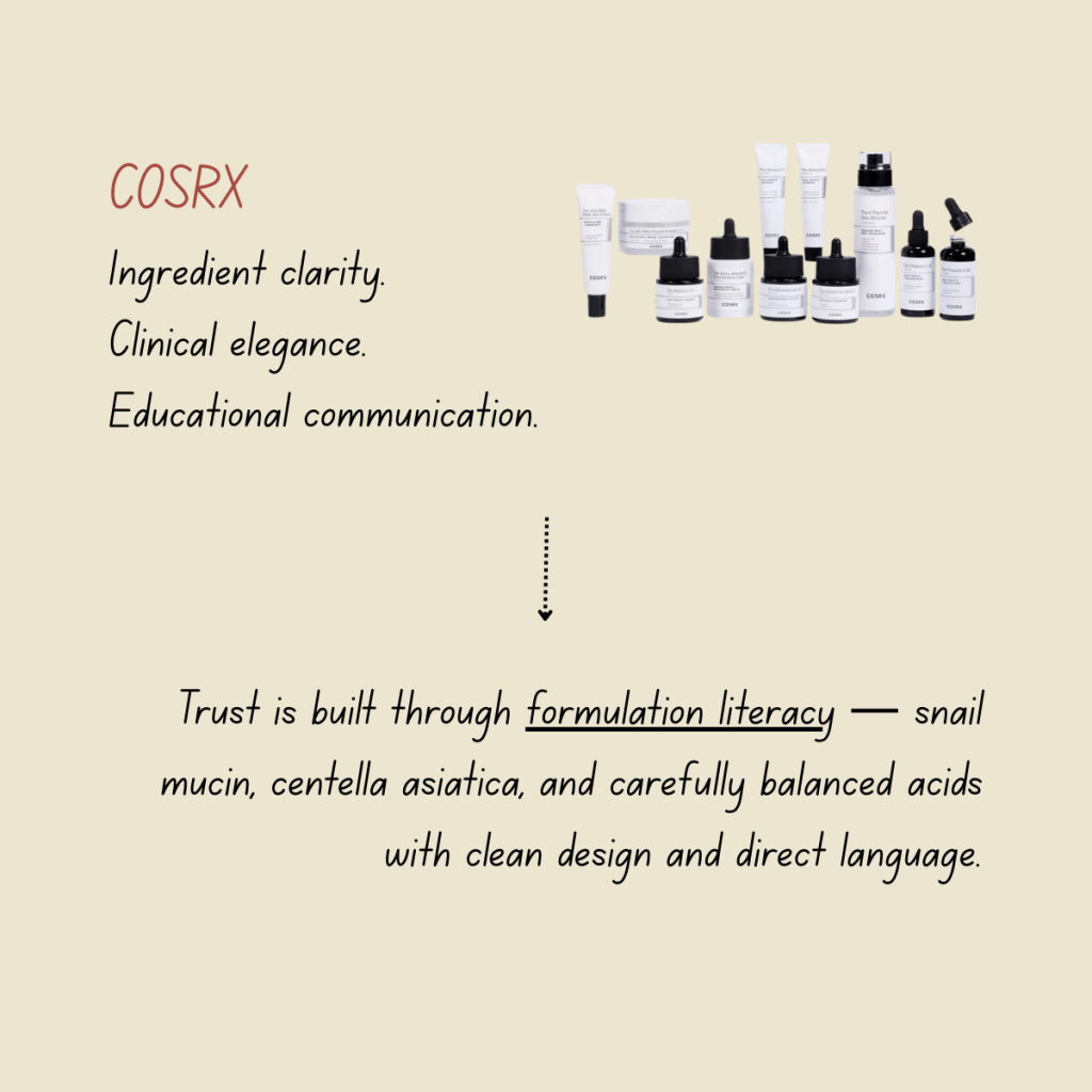 Brand takeaway: COSRX shows how clarity builds credibility — when ingredients lead, trust follows.