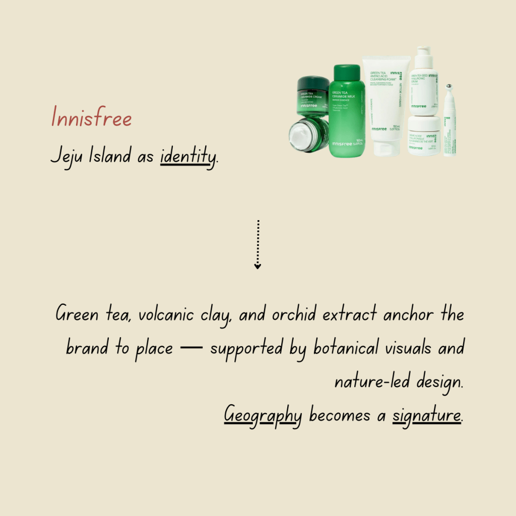 Brand takeaway: Innisfree shows how geography can become a long-term identity pillar when integrated across ingredients, visuals, and messaging.