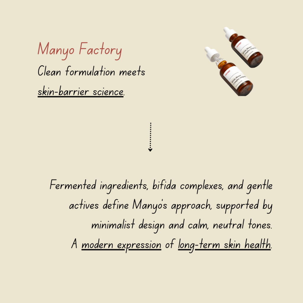 Manyo focuses on gentle formulations, fermented ingredients, and microbiome-friendly actives.