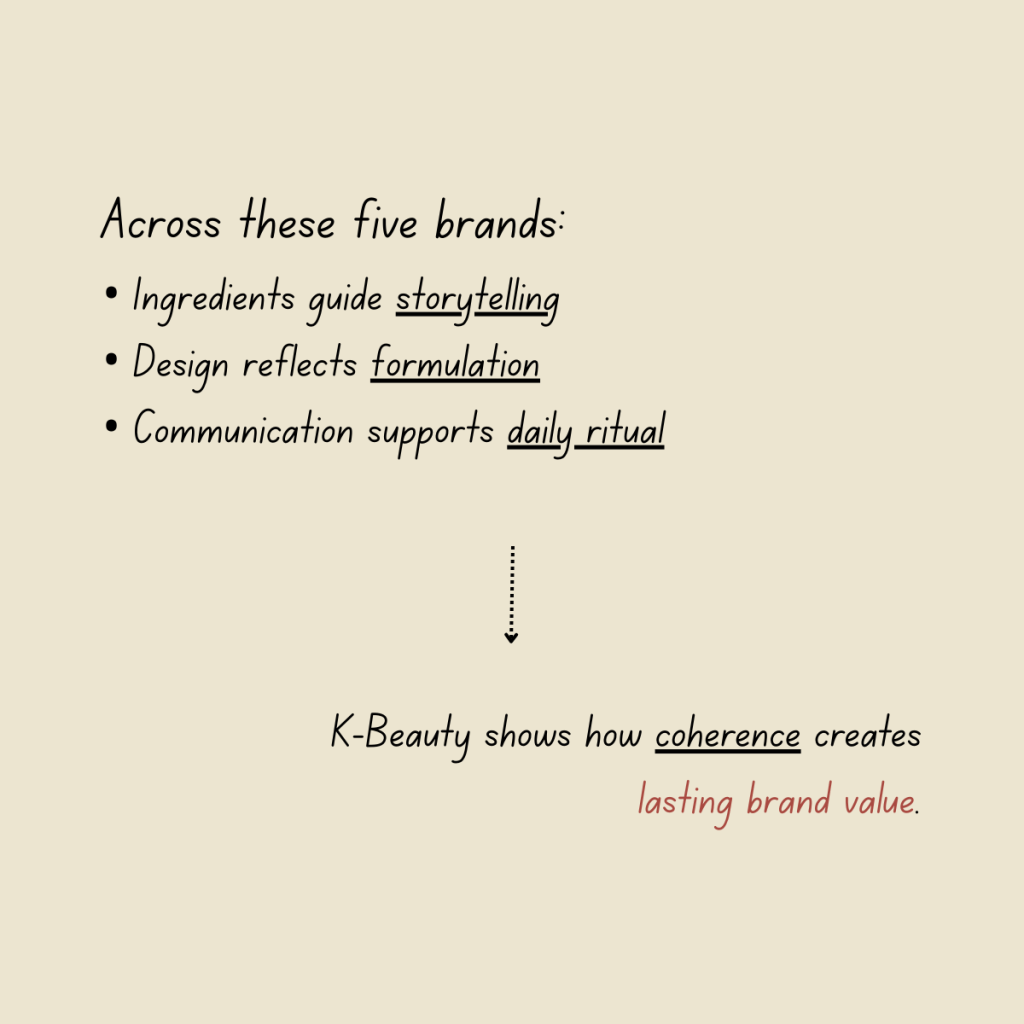 Together, these brands show how K-beauty connects formulation, design, and daily use into unified brand ecosystems.